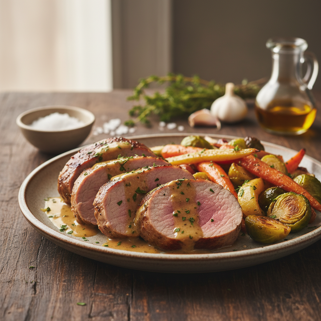 - Kaste: Kõige lihtsam ja maitsvam kaste valmib samal pannil, kus liha pruunistasite. Kui liha on ahjus, lisage pannile (ärge peske seda vahepeal!) veidi valget veini, et lahti kraapida põhja kinni jäänud maitsvad tükikesed. Lisage vahukoort, supilusikatäis Dijoni sinepit ja värsket tüümiani. Keetke, kuni kaste pakseneb.